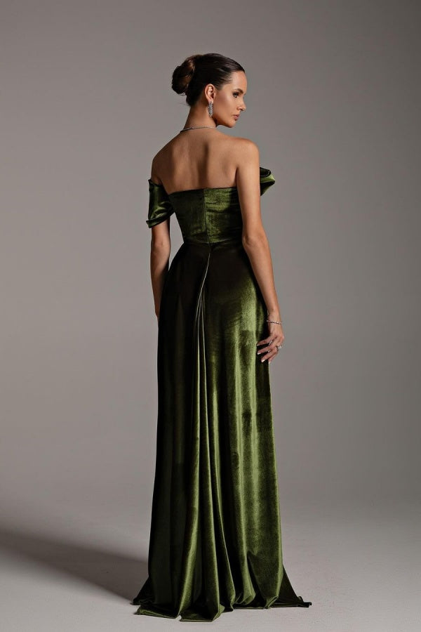 Green Velvet Bow Neckline Strapless Prom Dress ssr0304