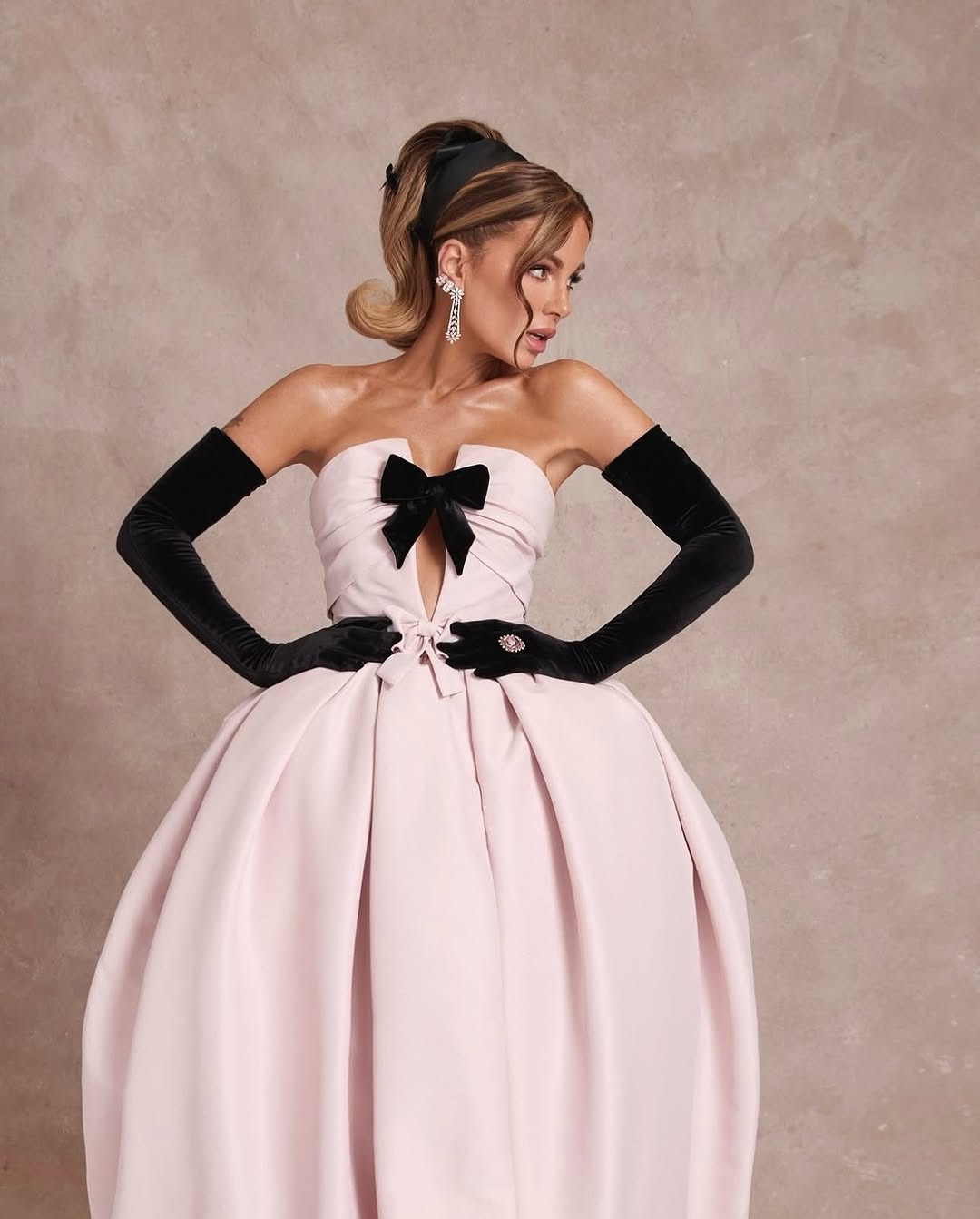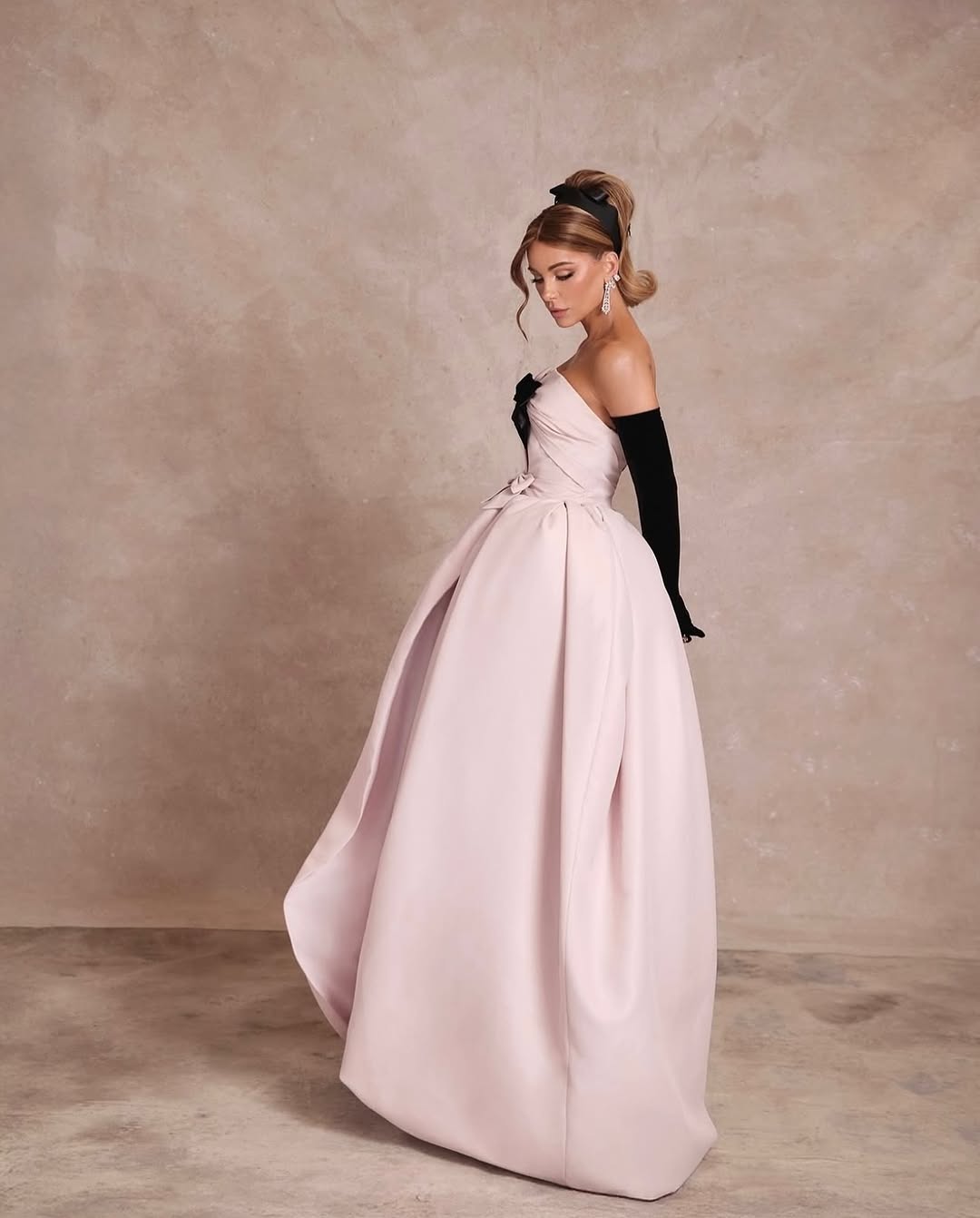 Pink Bud Shape Strapless Prom Dress With Black Long Sleeves ssr0492