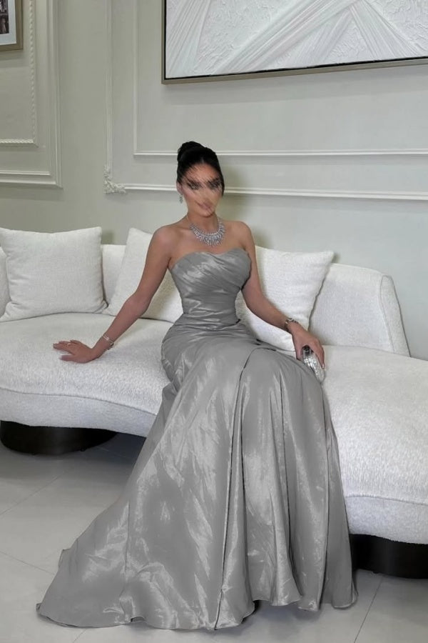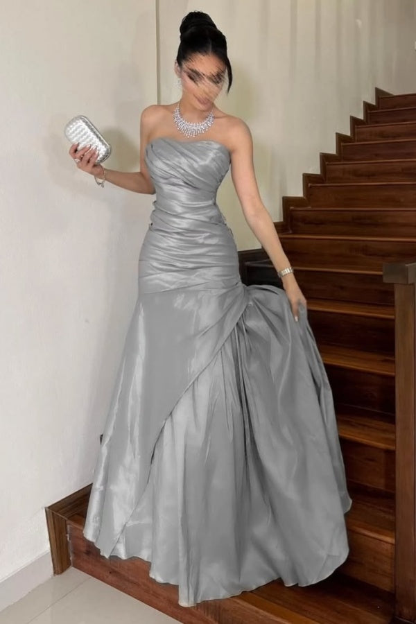 Silver Mermaid Mesh Strapless Pleated Prom Dress ssr0493