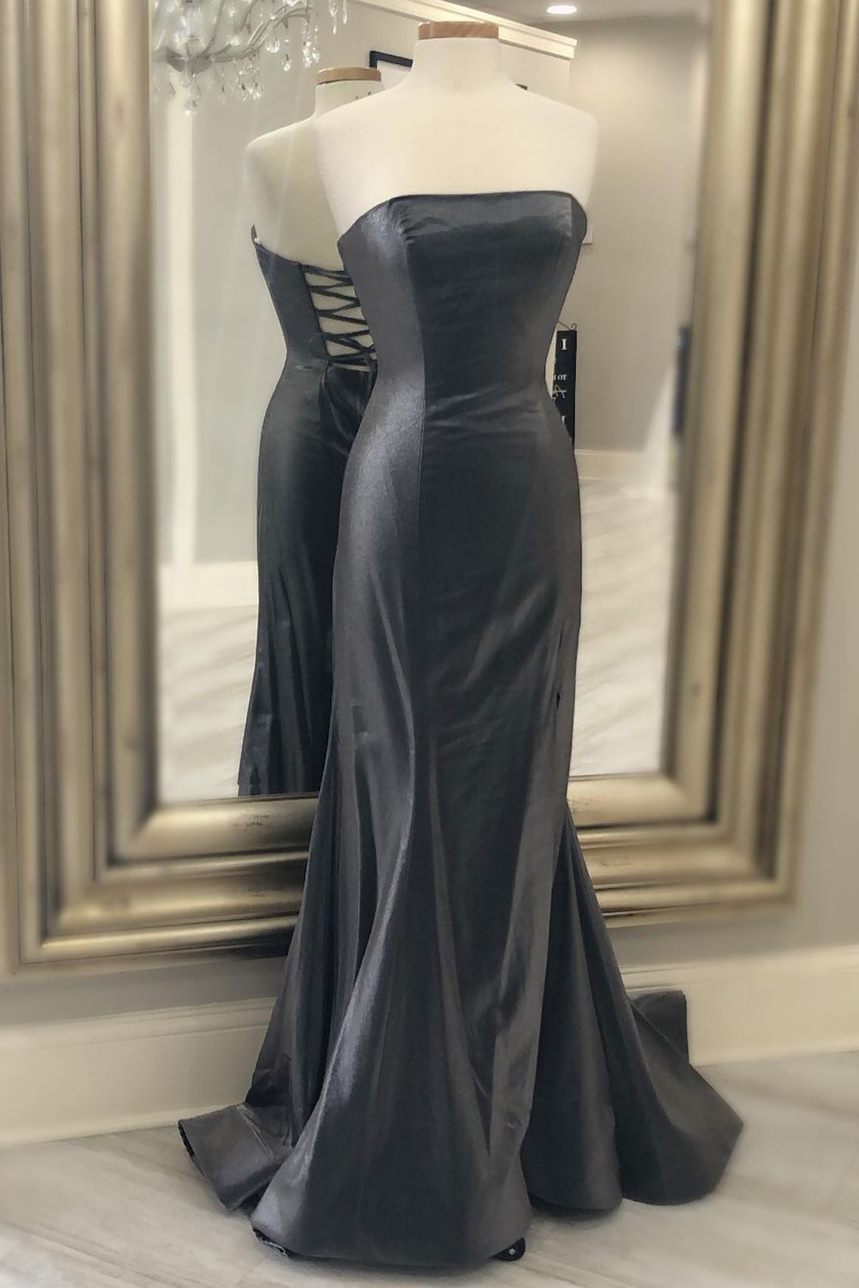 Simple Black Mermaid Strapless Long Prom Dress